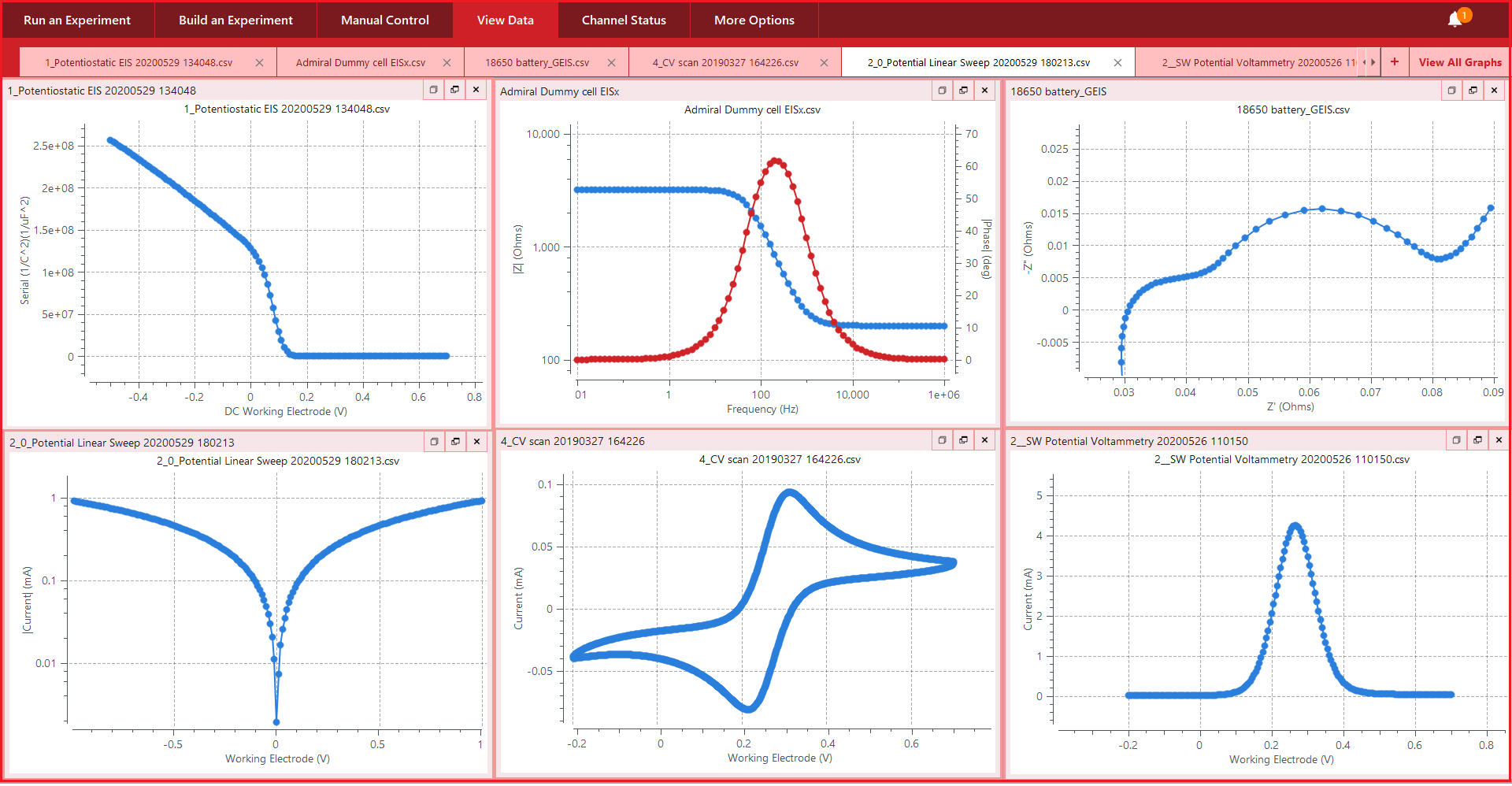 多通道电化学工作站软件界面