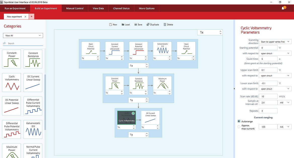 Squidstat Prime 电化学工作站,是一款具有直流测试技术的四通道电化学工作站。每个通道独立运行,多台 Prime可以组成高达128通道的电化学工作站。Prime通过一台PC控制可以完成多种电化学测试。